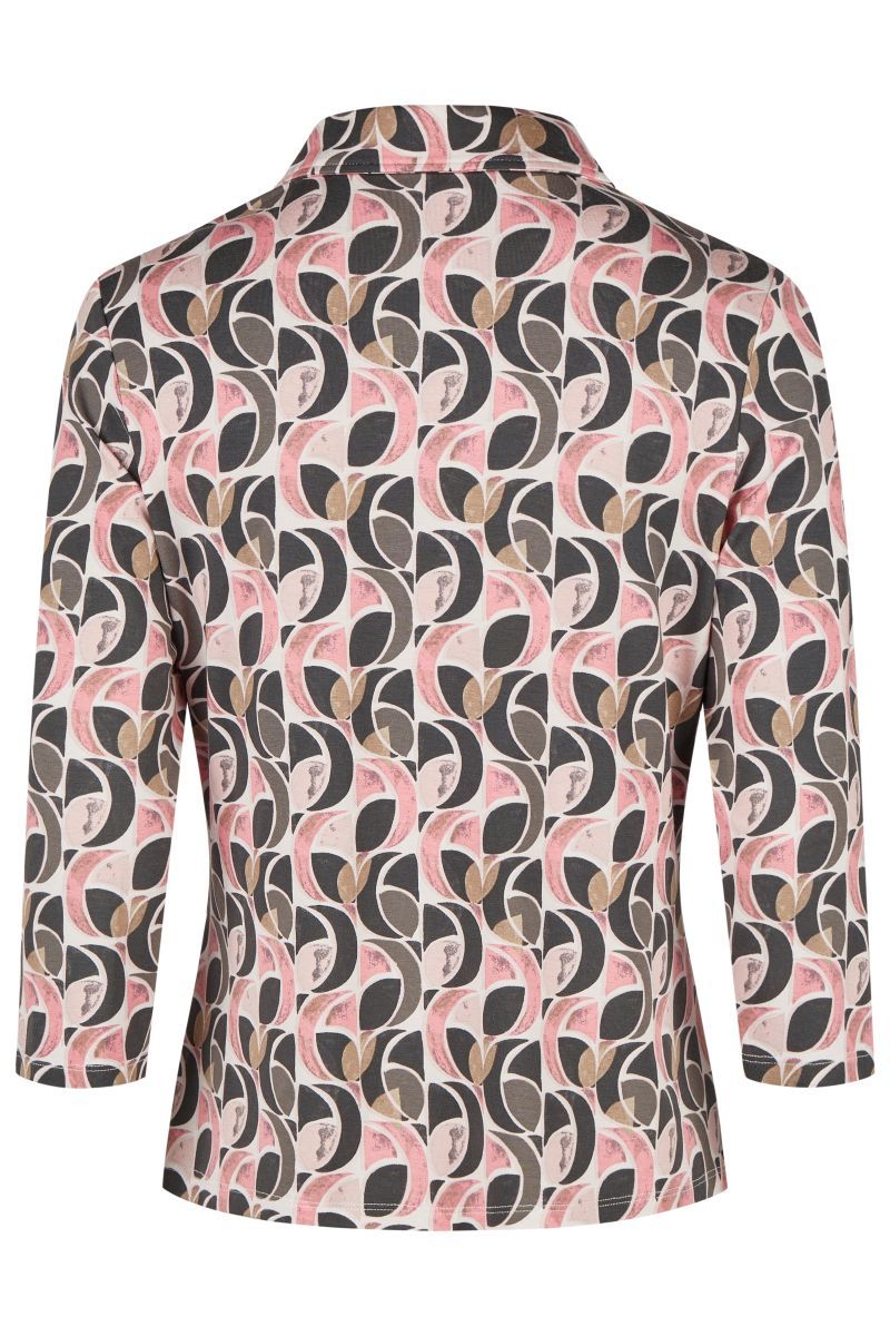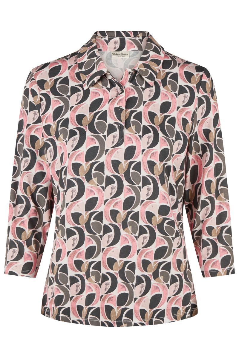 An alternative print polo shirt from Barbara Lebek’s Autumn Winter collection featuring 3/4 length sleeves and a collared neckline