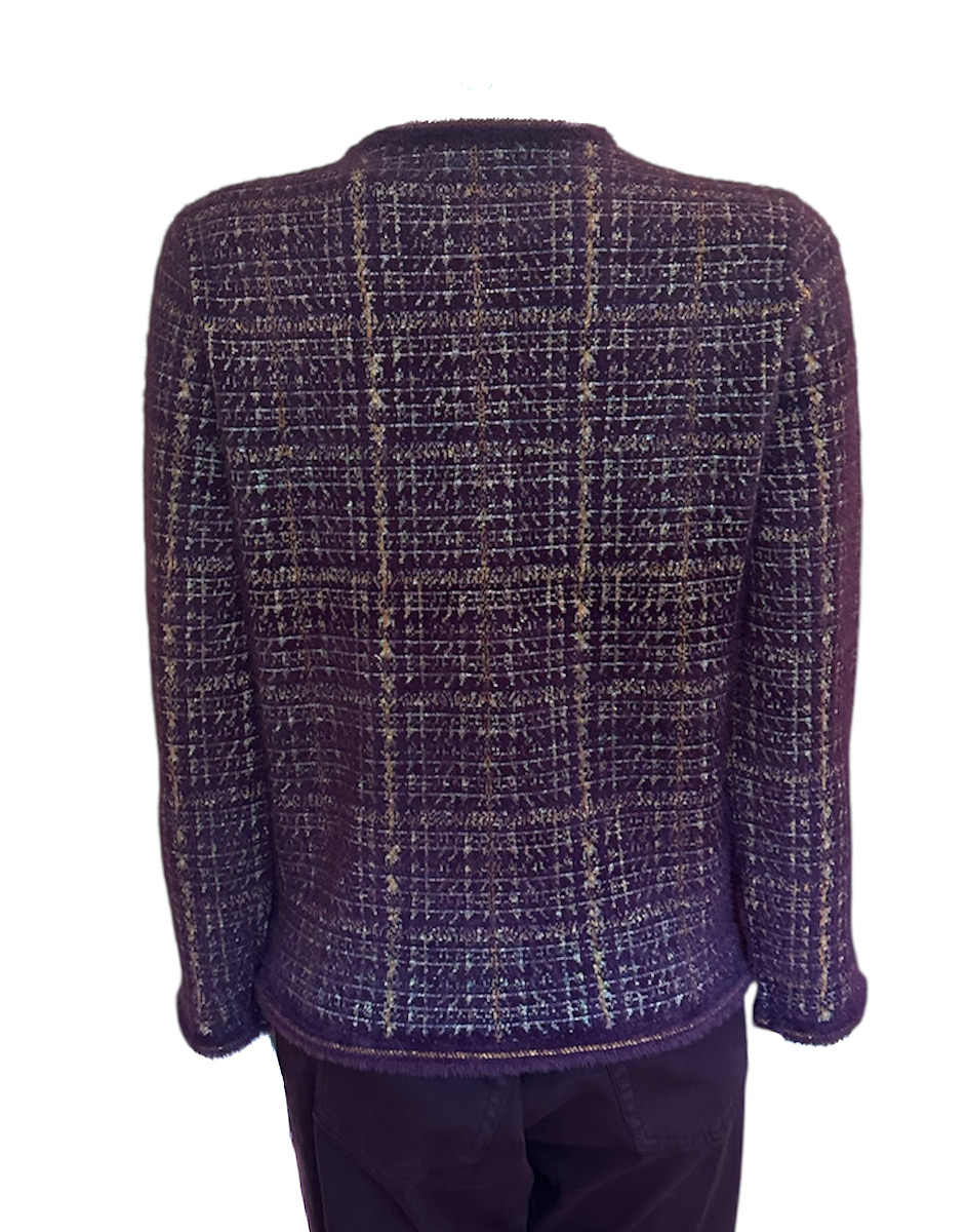 A round neck long sleeve print Button Up Cardigan from Castle of Ireland with front facing pockets and mother of pearl buttons.