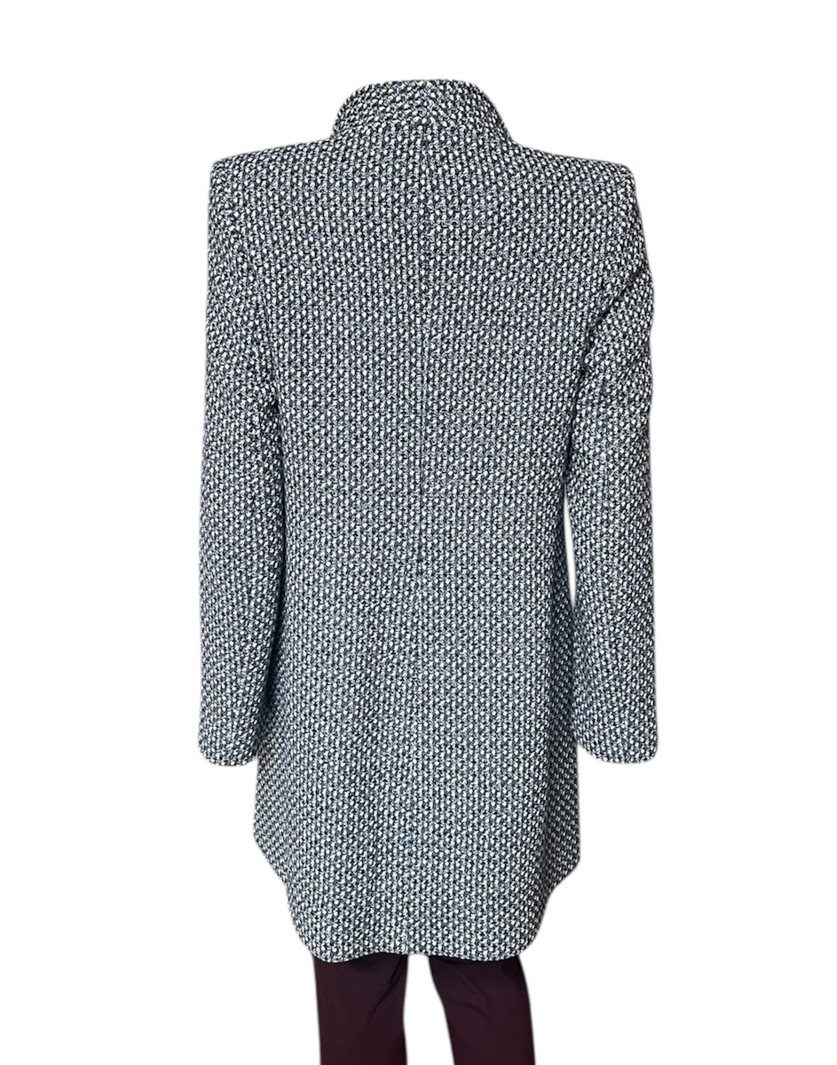 A detachable fur neckline coat from Christina Felix featuring full length sleeves, 3 center buttons, and side facing slit pockets. Lined.