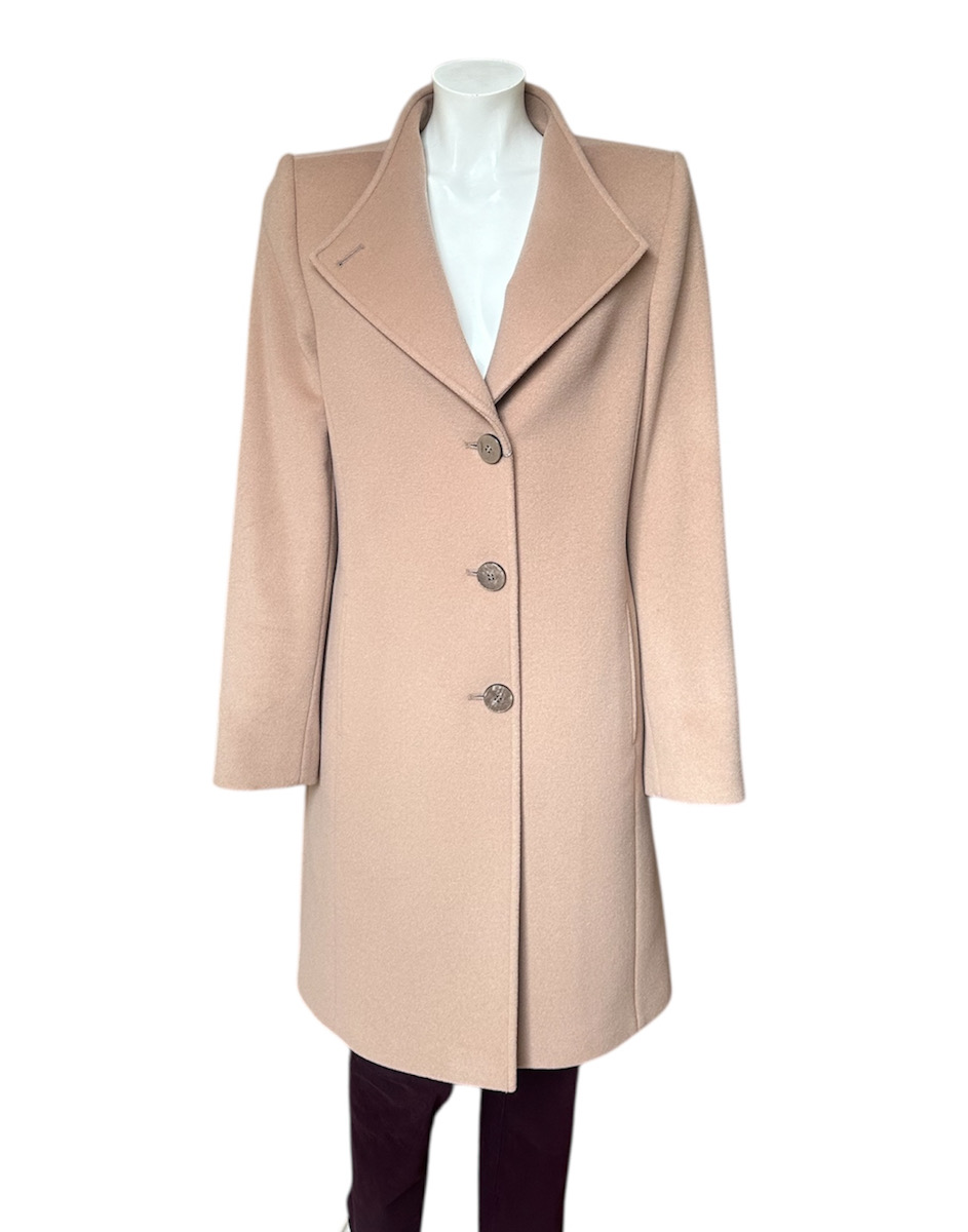 A wool and cashmere blend coat from Christina Felix featuring full length sleeves, 3 center buttons, and side facing slit pockets